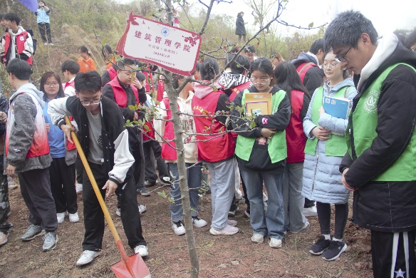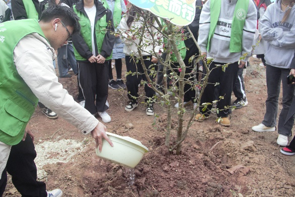 活动中,各院志愿者开始栽种准备好的树苗,志愿者栽种的都是适应重庆气候的植物。植树活动吸引了许多同学参与,大家认真学习,彼此合作完成树苗的栽种,体会到照顾树苗的不易和亲自栽种树苗的快乐,现场气氛热烈。同时,同学们让每棵树都有属于自己的名字,为自己种的树赋予了更多意义。