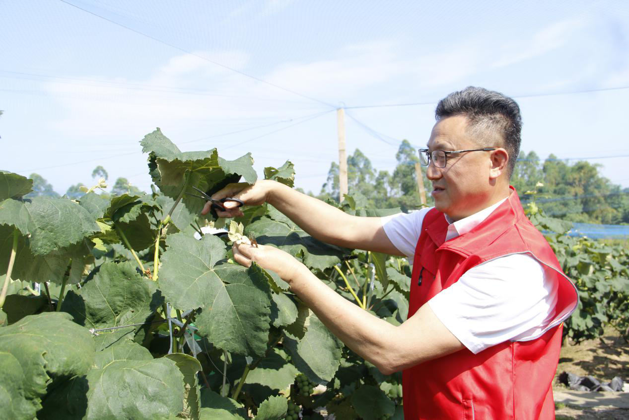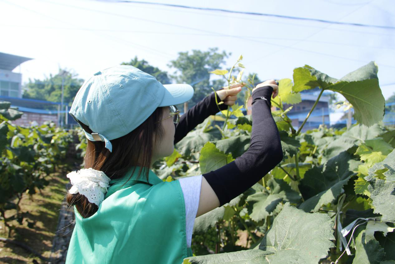 志愿者们拿好修果剪并分为不同小组来负责不同的葡萄区域,农场老师先在现场示范了如何疏果,认真学习后志愿者们手持修果剪,仔细对葡萄藤上的嫩芽进行一一疏掉,以防阻碍葡萄的健康生长,农场呈现一派热火朝天的忙碌景象,炎炎烈日下,大家团结协作,欢声笑语间挥洒着汗水,用实际行动践行着志愿服务精神,书写“青春式”助农篇章。农场老师也在一旁指导,检查志愿者们的修剪是否规范。 凝聚青春力量,展现乡村助农。此次助农志愿活动,不仅减轻了农场工作者们的劳动负担,还让志愿者们体会到了劳动的可贵、明白助农活动的意义,收获劳动感和成就感。助农,不止于帮扶,更是一种社会责任,作为新时代新青年,应积极参加志愿活动,在乡村振兴的舞台上奋发有为,推动农业发展。