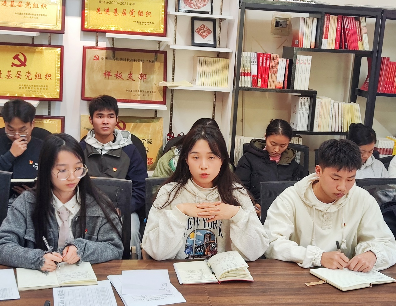 会议最后,支部书记黄杰总结到:习近平外交思想体现了中国共产党对人类美好未来的本质追求。新中国成立以来,我们党始终致力于维护国家利益、始终致力于人类进步,习近平主席以大国领袖的责任担当,深刻思考人类前途命运,继承发扬新中国外交核心原则和优良传统,积极推进重大外交理论和实践创新。我们作为青年党员能做些什么呢?我们应从自身出发,在实践中践行真理,不断增强自身本领,发扬苦中作乐的革命精神,吃苦不言苦、知难不畏难,无论顺境逆境都始终保持冲锋姿态,弘扬中国文化,讲好中国故事,力争在个人、社会、国家岗位实践中主动挺膺担当、奋发有为。
