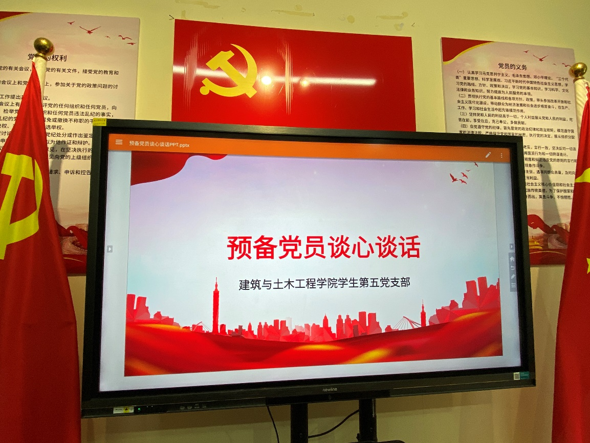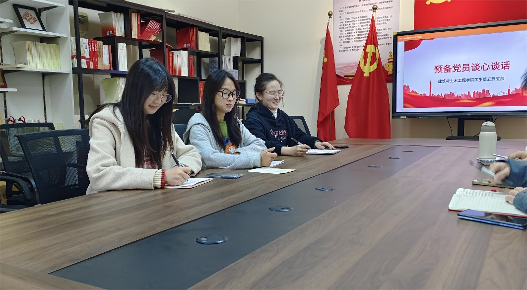 为切实提高预备党员的思想觉悟,不忘初心,牢记使命,增强支部预备党员之间的相互了解,进一步了解支部预备党员思想情况。建筑与土木工程学院学生第五党支部于2023年11月8日中午在一教413召开了预备党员谈心谈话会议,本次会议由支部冯耀同志主持,支部书记周艺书记、支委会全体成员及全体预备党员同志参会。