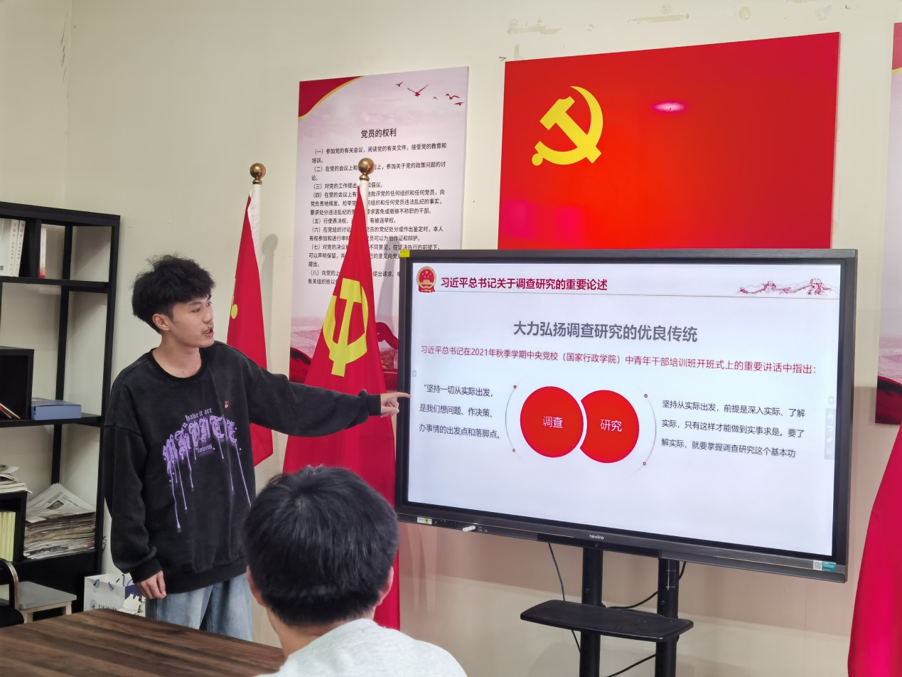 第二批主题教育开展以来,党内外大兴调查研究,重视调查研究是马克思主义认识论和党的思想路线的内在要求,是做好各项工作的基本功。为大力弘扬调查研究的优良传统,建筑与土木工程学院学生第五党支部第一党小组于2023年11月10日在一教413召开以“全党大兴调查研究之风”为主题的党小组会。此次会议第一党小组全体成员参会,会议由许文杰同志领学。
