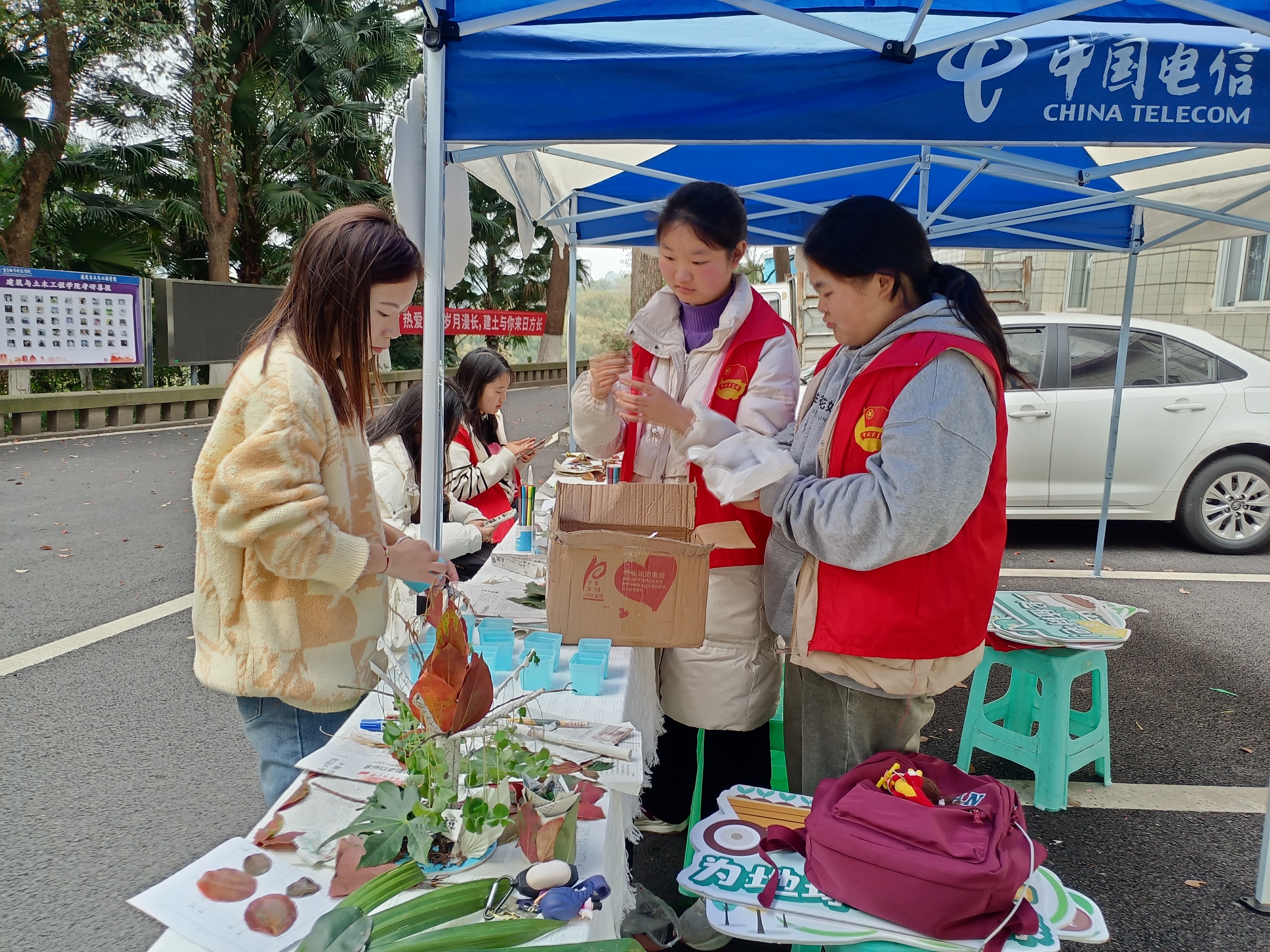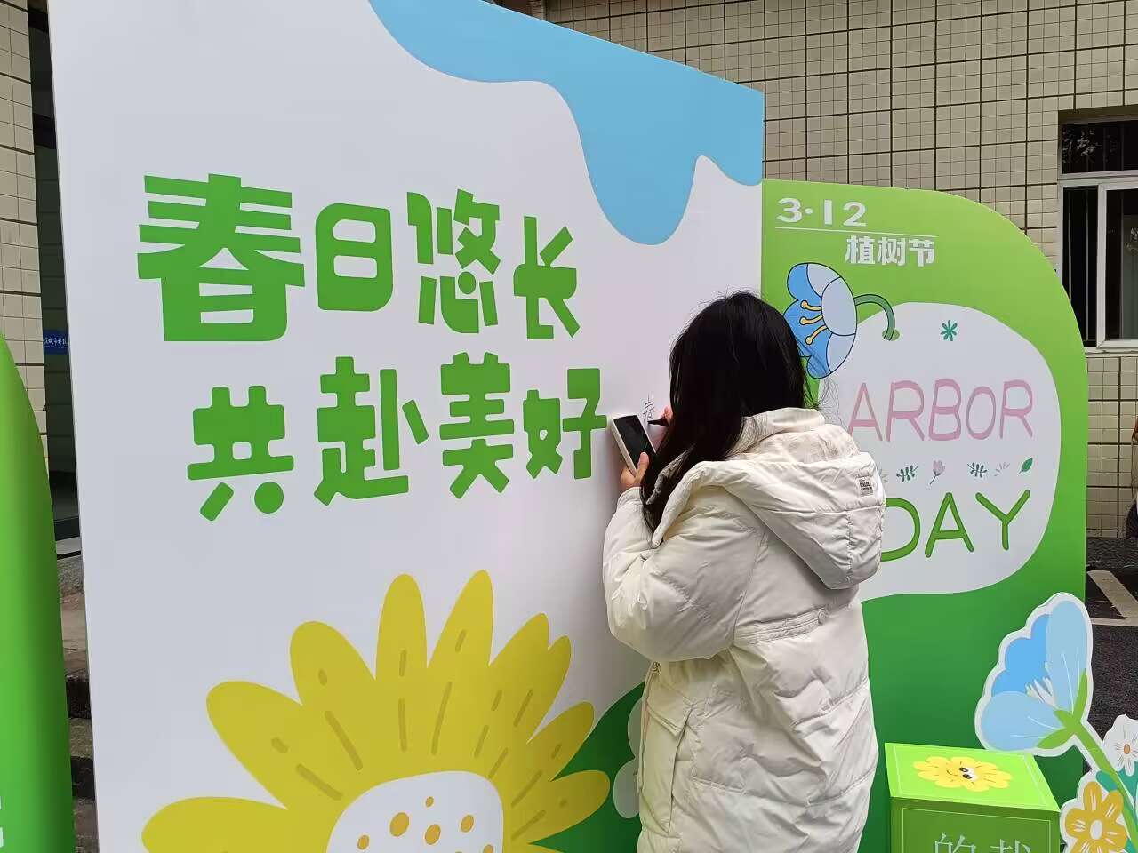 除了现场植树活动,绿色环保知识问答与环保DIY、签名打卡活动也在AB栋与一教同步进行。绿色环保知识问答现场,同学们积极参与,认真作答,纷纷表示通过此活动对环保有了更深层次认识。问答现场还有集赞小绿植领养活动。DIY活动现场,同学们利用废弃物及自然材料,通过裁剪、粘贴等方式,结合自己的创意制作出全新的艺术品。同时现场还设置签名打卡墙,供大家留下属于自己的环保承诺。
