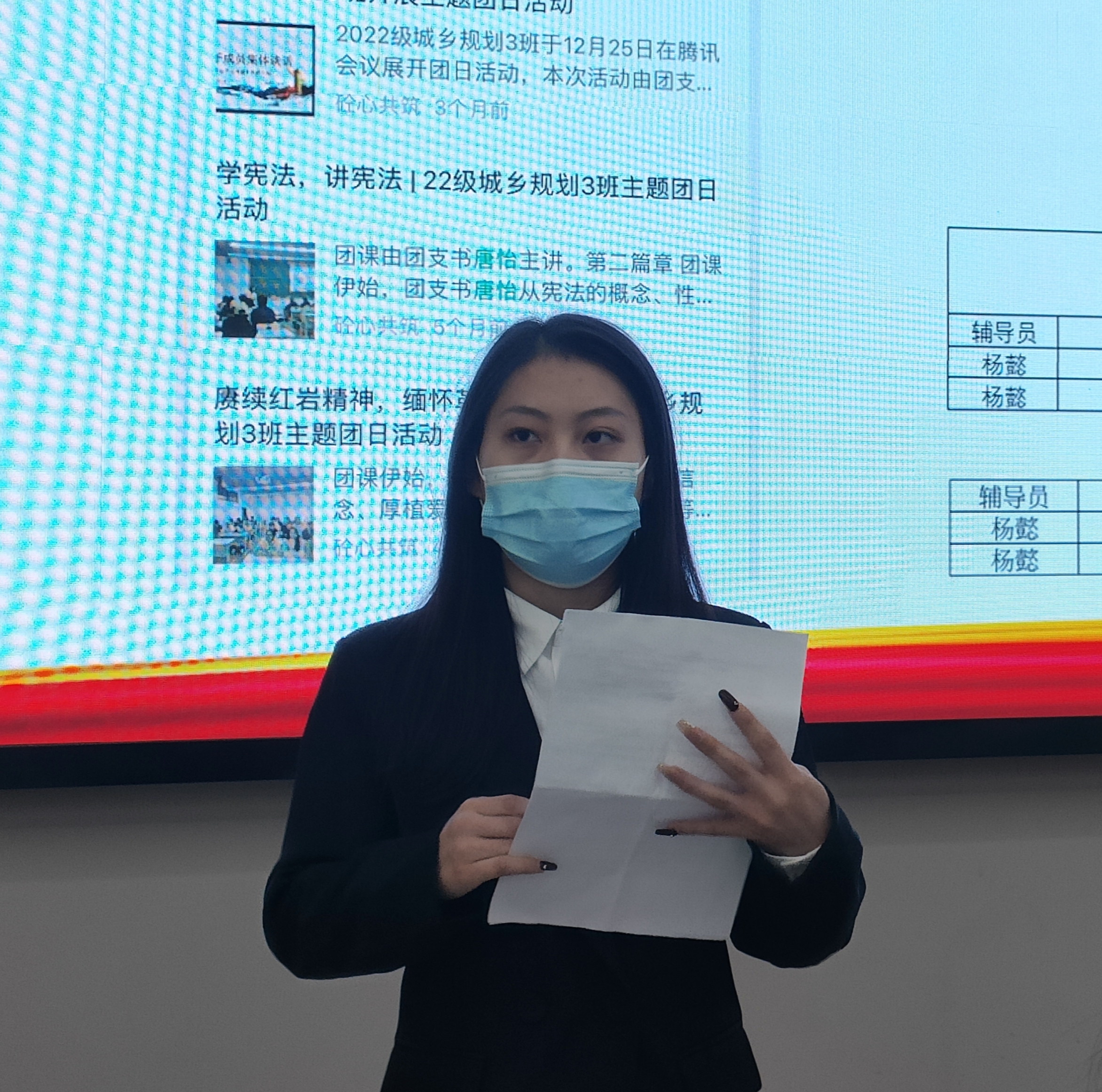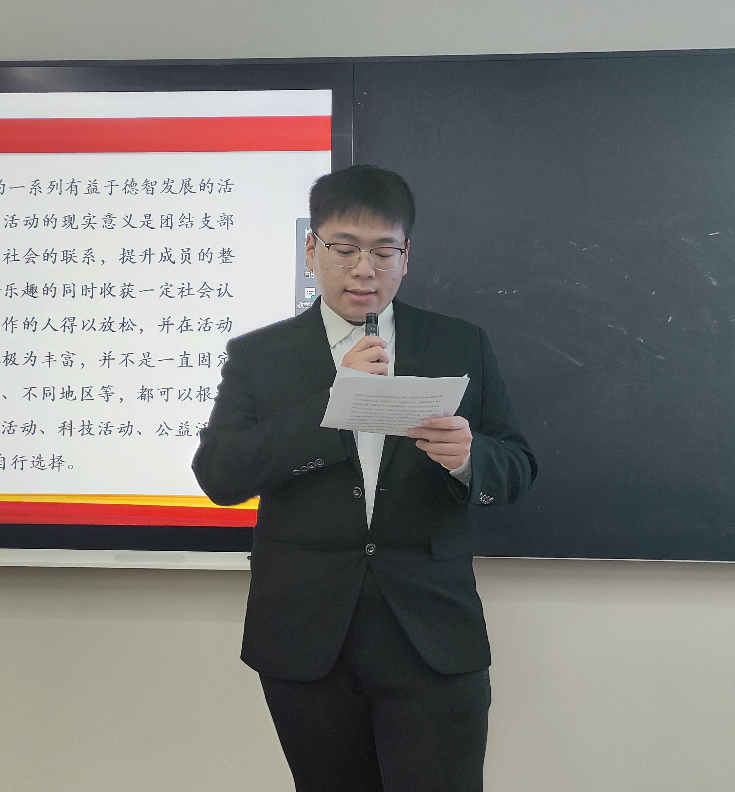 会议伊始,全体参会人员起立奏唱中国共产主义青年团团歌。组织部对团日活动、智慧团建提出了相关要求,同时对各级团支部书记和团支部考核进行了讲解,强调了团日活动和智慧团建不仅能团结各团支部成员,还能扩大团支部影响力。
