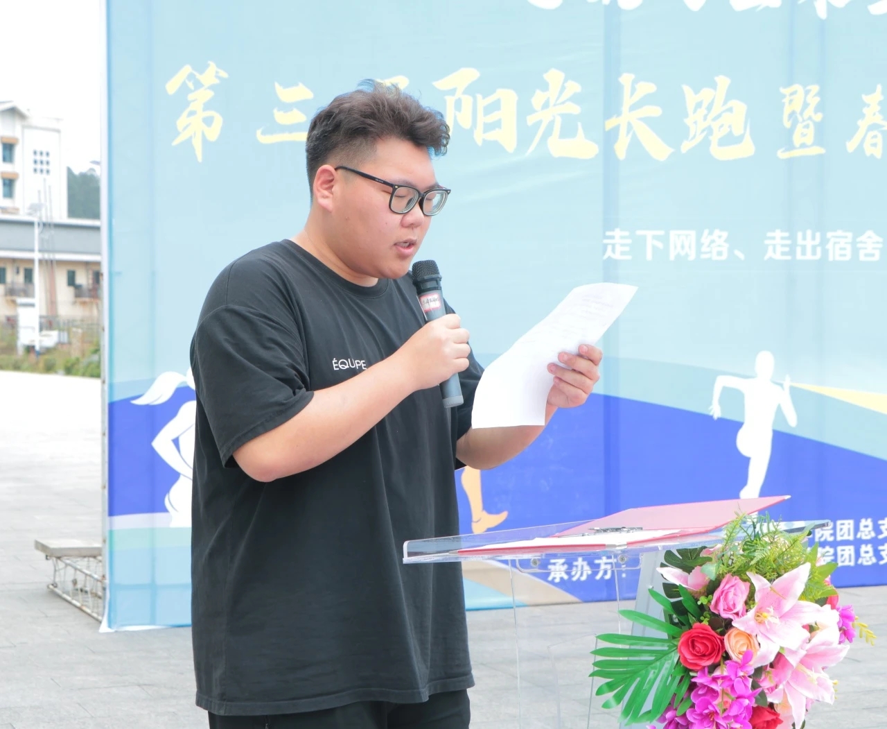 活动伊始,主持人开幕致辞,随后由院长助理杨龙龙上台讲话,表达对此次活动的支持与期待。他强调阳光长跑活动,不仅是一场体育竞技,更是一场磨砺意志,培养良好习惯的过程。