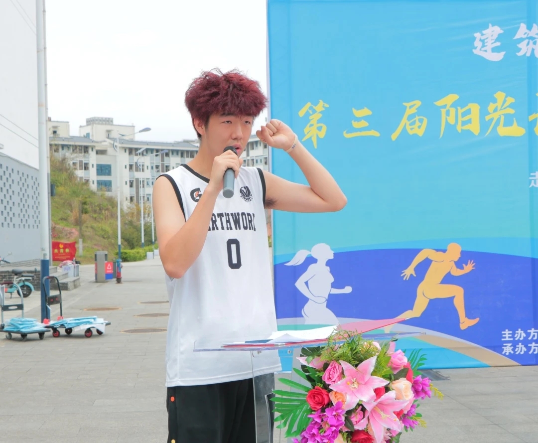 随后,运动员代表史博奇上台发言,表示将全力以赴,为学院争光添彩。运动员的豪言壮语,彰显了建筑与土木工程学院学子的自信与决心。接着,工作人员代表赵泓宇宣誓,他们将秉持公正、公平的原则,确保比赛的顺利进行。