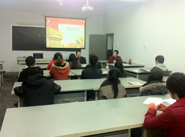 2012年11月13日晚7时30分,建筑学院于一教412会议室召开十八大专题会议,认真贯彻学习了胡锦涛总书记在中国共产党第十八次全国代表大会上的报告精神。本次会议由建筑学院院长周毅、党总支书记金杰共同主持。建筑学院全体教职工参加了本次会议。