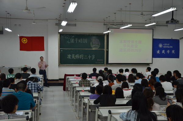 一个简短的视频引入了本次活动的主题——建筑师的20岁。周毅院长根据自己从事建筑师这一职业几十年的经验体会出发,为到场的师生们详细的讲解了作为一个建筑师的人生成长历程和作为建筑师独特的世界观,为同学们在今后的成长道路上提供了宝贵的经验。