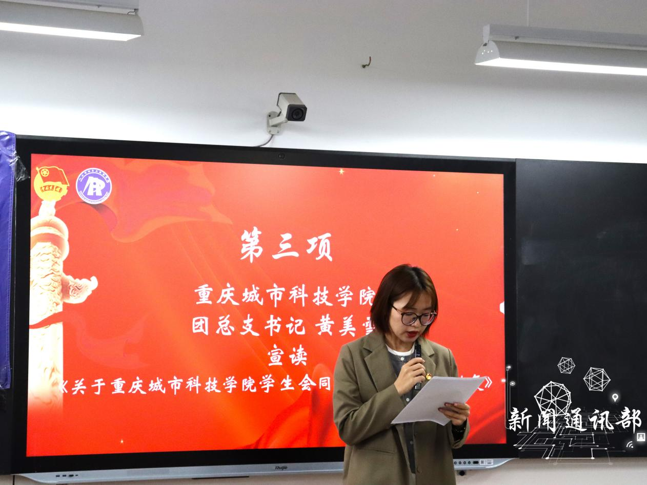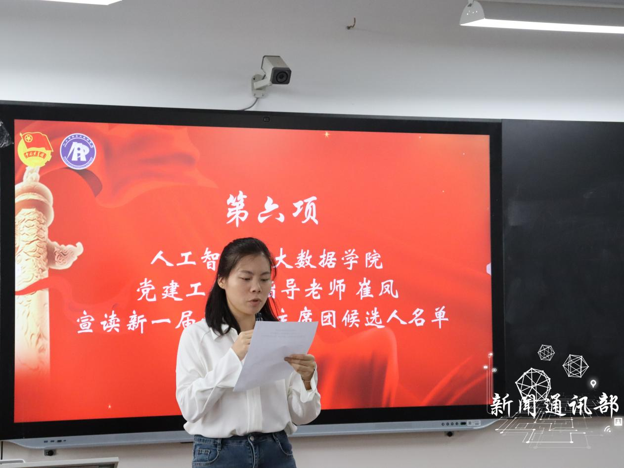 为贯彻落实习近平总书记关于青年工作的重要思想,进一步优化学生干部团队执行力,确保各项活动高效有序进行,推动学生工作迈上新台阶。10月17日12:30,人工智能与大数据学院于巴南校区博学楼202开展第四次学生代表大会,永川校区学生代表以腾讯会议线上直播的方式参加。大会由人工智能与大数据学院党总支副书记邓杰予,团总支书记黄美雪,学生第四党支部书记兼团学指导老师殷玉卿,学生第二党支部书记朱颖,党建工作站指导老师崔凤,团学指导老师王维田、黄诗艺、黄圆圆、张译以及各学生代表参加。学生会主持部黄涵煊主持本次大会。