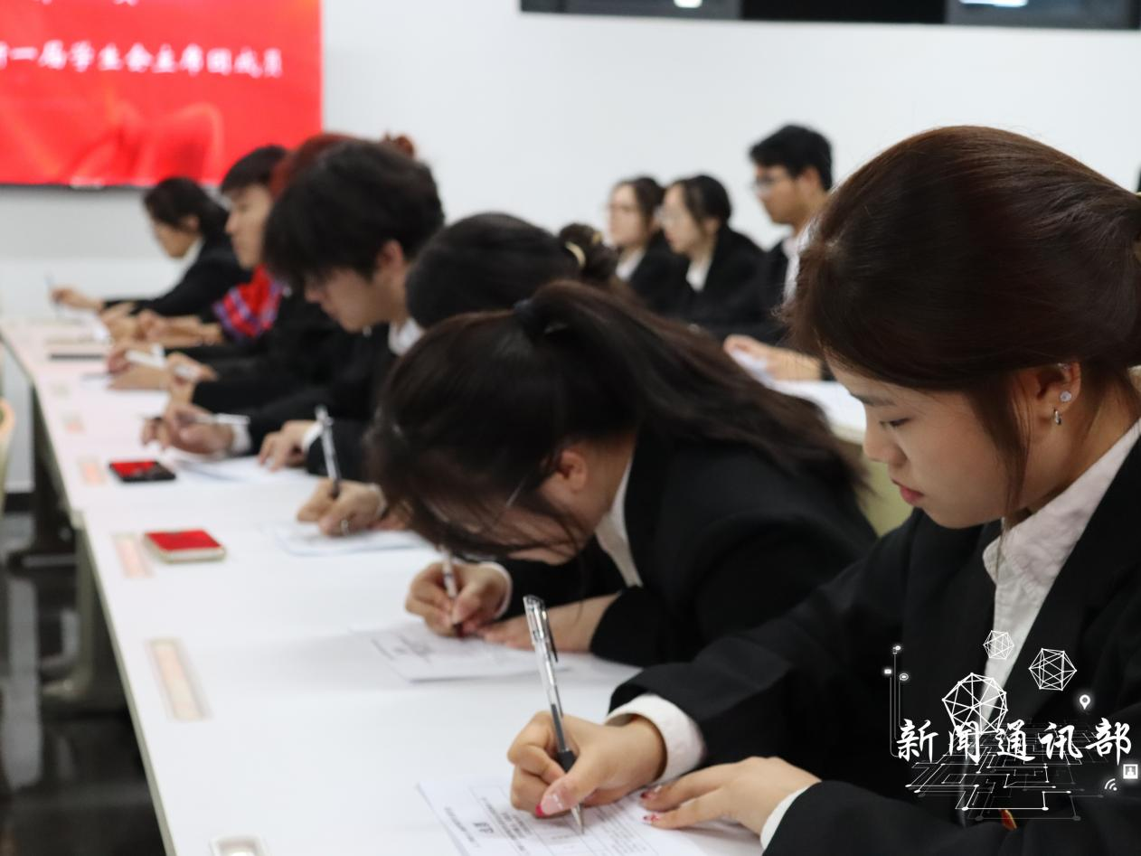 工作总结完毕后,由学生第二党支部书记朱颖宣读《选举办法(草案)》,党建工作站指导老师崔凤宣读新一届学生会主席团成员候选人名单。紧接着,会议迎来激动人心的新一届学生会主席团成员投票选举环节,投票过程严格遵循公平、公正、公开的原则。学生代表们依次上台,有条不紊地将自己的选票投入票箱。投票过程由团学指导老师王维田监票、团学指导老师黄诗艺记票,记票现场安静严肃。最后由团学指导老师王维田宣布选票结果。