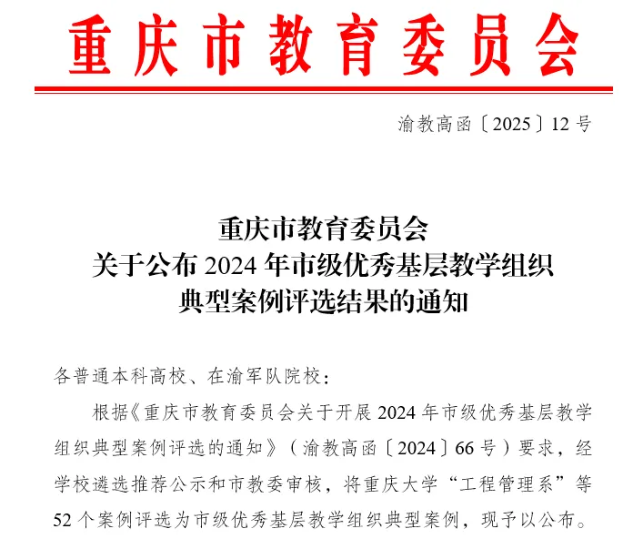 本次评选活动由重庆市教育委员会组织开展,旨在表彰在基层教学组织建设中表现突出的典型案例,推动高校教育教学质量提升。经过学校遴选推荐、公示以及市教委严格审核,软件工程系从众多参评单位中脱颖而出,成为市级优秀基层教学组织典型案例之一。