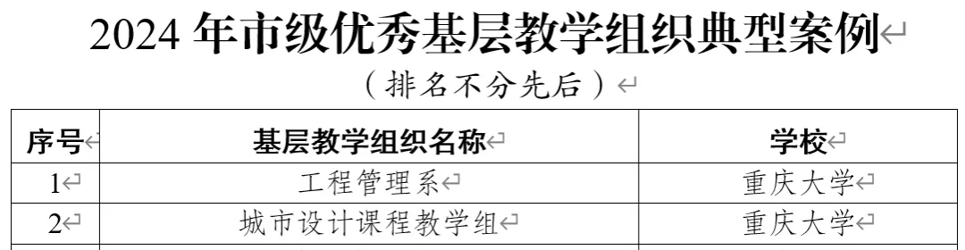 近日,重庆市教育委员会公布了2024年市级优秀基层教学组织典型案例评选结果,我校人工智能与大数据学院软件工程系凭借卓越的教学组织建设和突出的教育教学成果,成功入选市级优秀基层教学组织典型案例,充分体现了市教委对我校教学工作的高度认可!