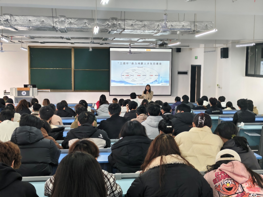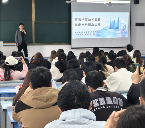 4月2日下午15时,人工智能与大数据学院在博学楼206成功举办鸿蒙技术专题讲座。本次讲座特邀四川讯方信息技术有限公司技术专家团队来校,为学生们带来《解锁鸿蒙技术密码,锚定未来职业坐标》的专题分享。我院2023级全体卓越班同学和部分班级学生代表参加了本次讲座。讲座围绕鸿蒙技术发展、鸿蒙系统应用场景及未来就业前景展开,为学子们提供了前沿的技术视野和职业规划指导。