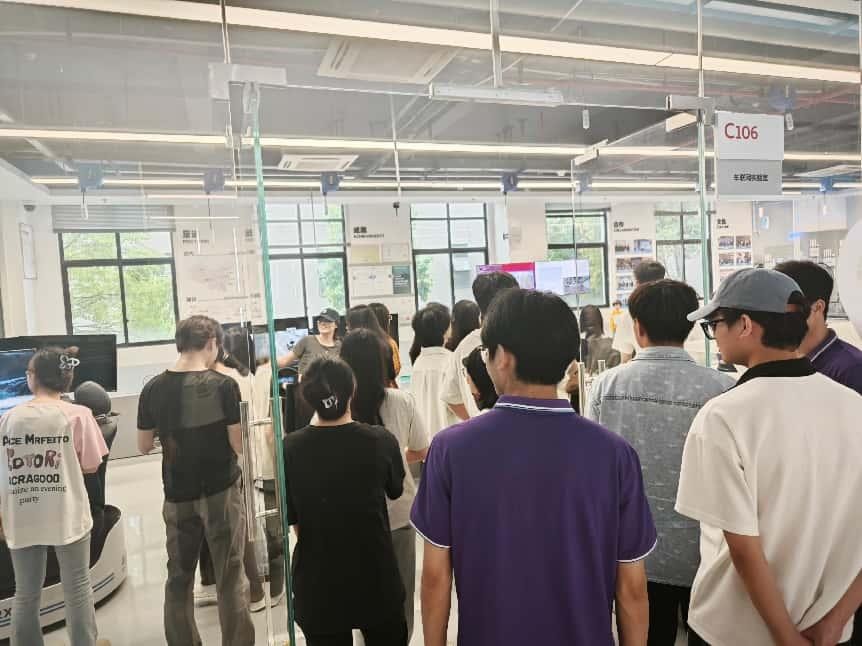 在智能网联汽车主题实验室。室陈列着自动驾驶小巴、智能移动机器人等设备,并与长安汽车共建车路云协同平台。师生们观察到,学生团队正利用毫米波雷达和激光雷达融合数据,测试边缘计算技术在实时避障中的应用。实验室负责人介绍:“这里90%的项目来自企业需求,例如与赛力斯合作的车载软件可靠性测试,学生成果可直接落地量产车型。”