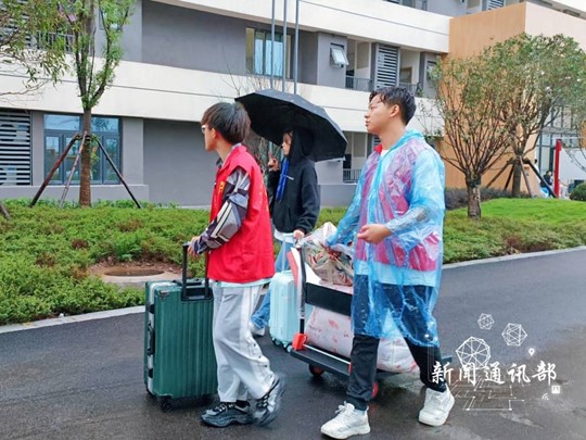 蓄势待发,志愿同行。学院提前安排近150名在校学生组成志愿服务队,为新生提供行李搬运、报到咨询、校园引导、秩序维护等志愿服务。迎新开始前,志愿者们奔走在校园的各个角落,搬桌椅、准备物资、布置迎新现场,缕缕秋雨浇不灭他们心中的火热。他们饱含热情,充满活力,将一切安排得井然有序,只为等待新生的到来。