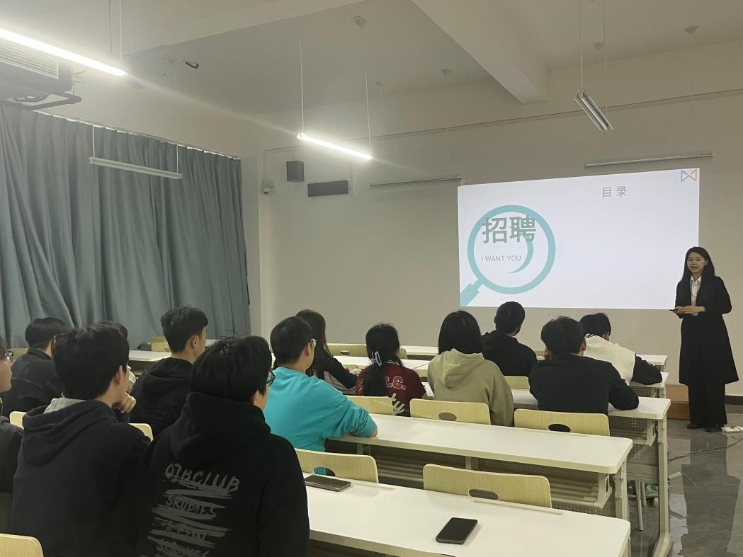 为加快推进2024届毕业生就业指导工作,进一步深化“校企合作”,10月19日上午,人工智能与大数据学院邀请重庆文德数字科技发展有限公司人事部负责人庞冉到校开展2024届校园招聘专场宣讲会。