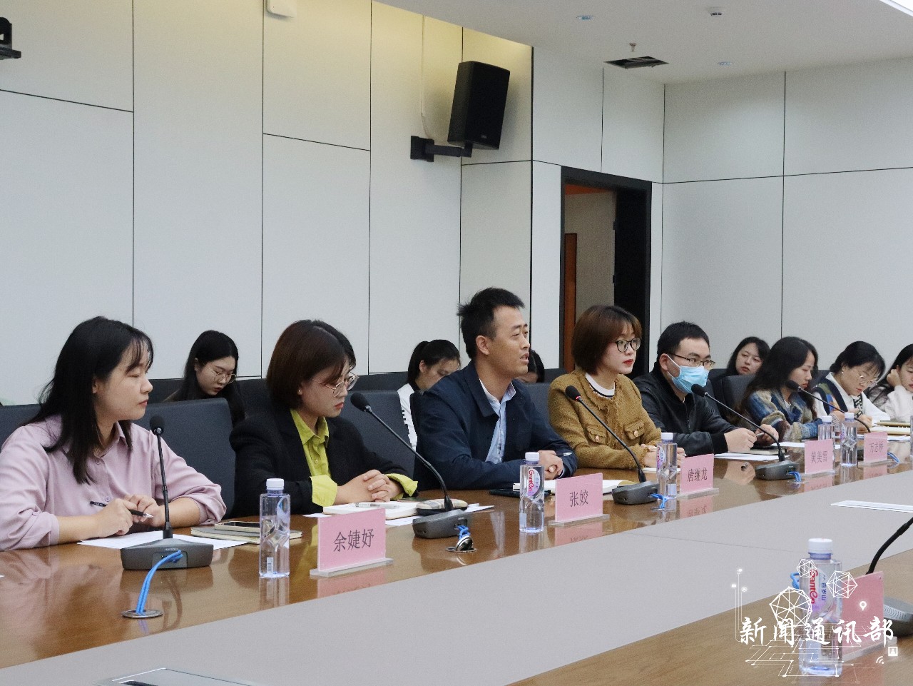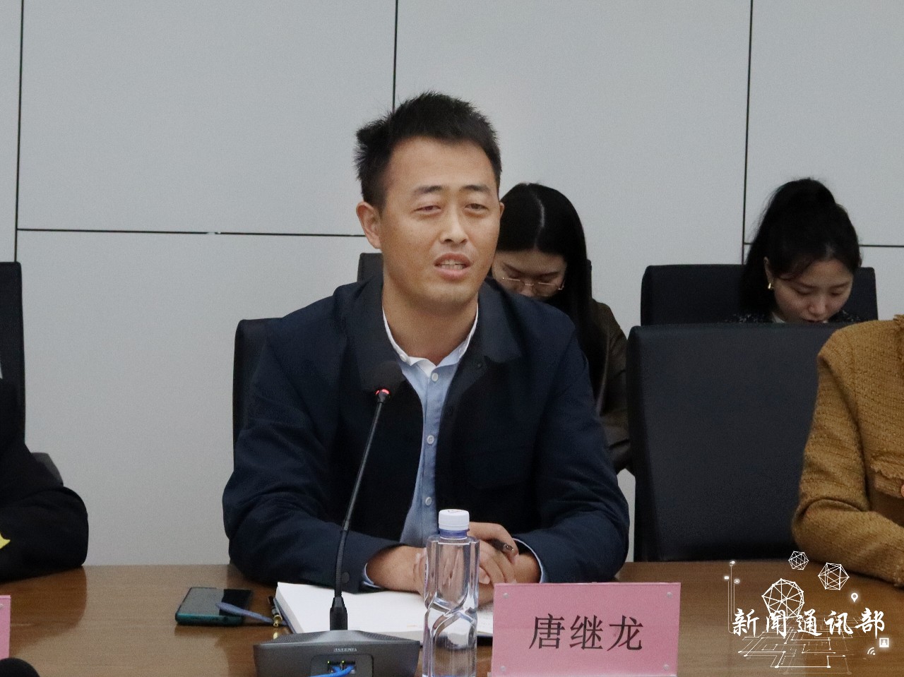 交流会上,人工智能与大数据学院党总支副书记唐继龙做致辞发言,对长江师范学院一行的到来表示热烈欢迎,并就学院办学规模、办学成效、学工队伍、专业建设等方面作介绍。他表示,我院与长江师范学院之间有着深厚的渊源,希望两院能加强全面交流,助力搭建辅导员成长新平台。