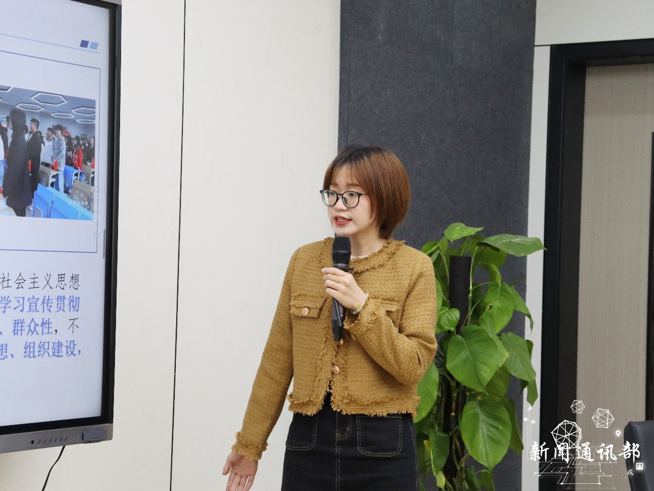 随后,人工智能与大数据学院党总支组织委员张姣对党建工作进行分享。张姣老师围绕党建工作职责,结合实际工作情况,就日常管理与服务的感想、困惑、举措、创新做法和成效等方面分享工作经验,表达新形势下引领、服务学生成长的热切愿望。
