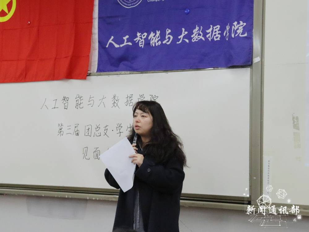 为推进团学组织内部建设,促进各部门经验交流,注入新鲜血液,加强学生工作组织建设。11月18日12:50,人工智能与大数据学院于主教103顺利开展第三届团总支·学生会见面会。此次活动由团总支书记黄美雪,团学指导老师殷玉卿、王维田、黄圆圆出席,学生会主持部秦嘉禾主持,全体团学成员共同参加。