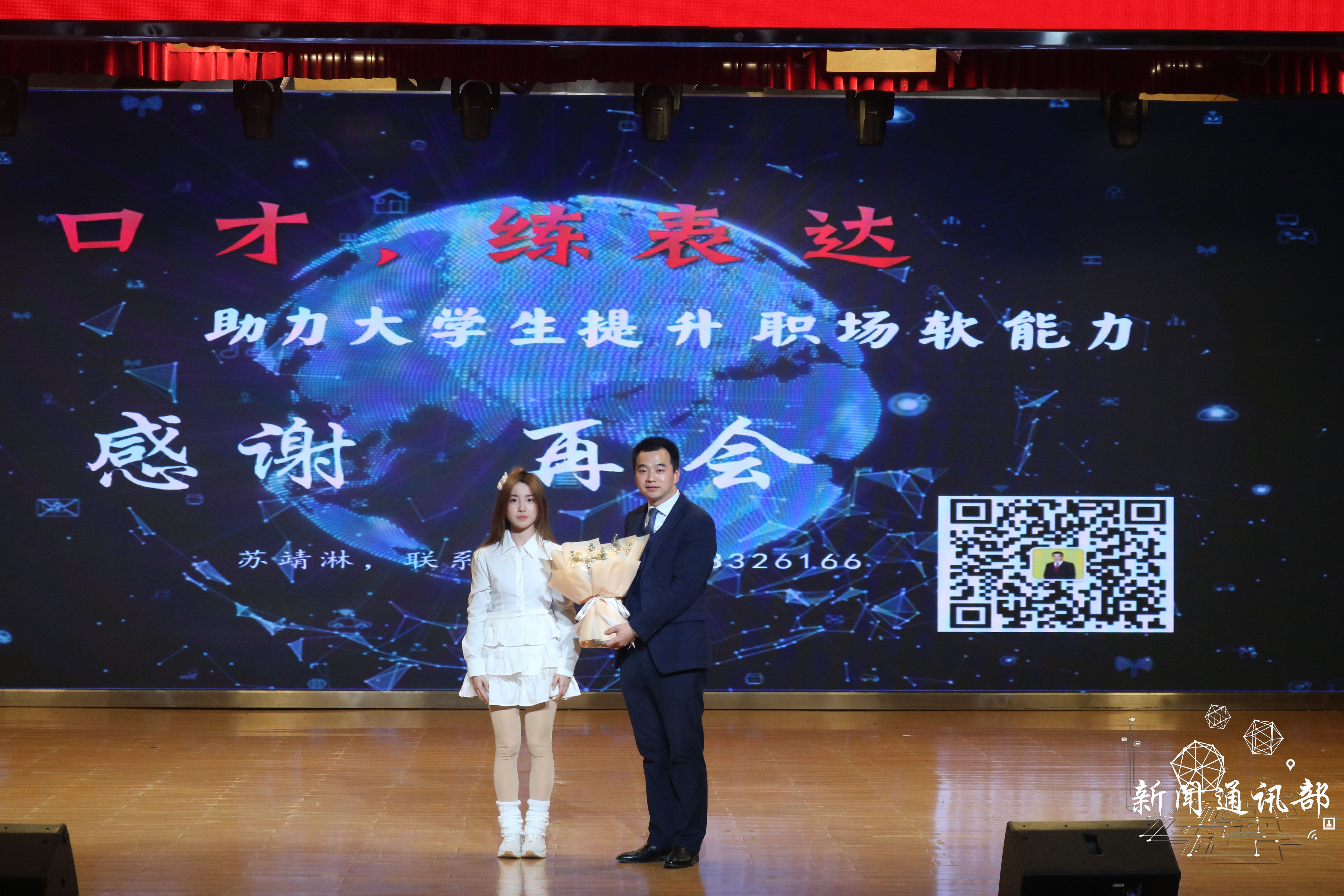 在讲座中,苏靖淋老师以“口才-练表达,助力大学生提升职场软能力”为专题,从为什么要学演说、谁在与你聊演说、演说要学些什么、如何才能够学会演说四个方面进行授课,不仅加深同学们对演讲与口才的理解和认识,也让同学们学到如何培养演讲与口才能力的方法和技巧,为同学们未来发展提供有力支持。并通过现场对练,对同学们存在是问题一一进行纠正,为人工学子上了一堂即学即用的演说实战课。