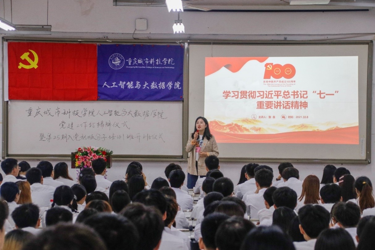 为深入学习贯彻习近平总书记“七一”重要讲话精神,推动党史学习教育深入开展。10月8日中午,人工智能与大数据学院在主教103开展了学习贯彻习近平总书记“七一”重要讲话精神宣讲会。本次宣讲会由党总支副书记张念同志主讲,全院学生学员及第25期全体入党积极分子参加此次会议。