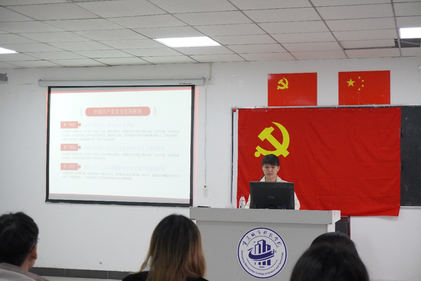 紧接着,人工智能学院党总支组织委员张明晶以《从百年历史看党的初心和使命》为题,为同学们讲述中国共产党百年历史,并表示新时代青年应全面学习习近平新时代中国特色社会主义思想,勿忘昨天的苦难辉煌,无愧今天的使命担当,不负明天的伟大梦想,以史为鉴、共创未来,为实现第二个百年奋斗目标、实现中华民族伟大复兴的中国梦而不懈奋斗。