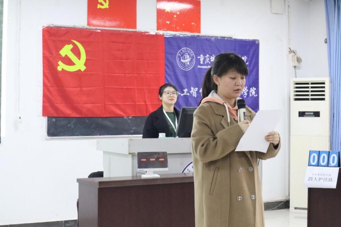 比赛在庄严的国歌声中拉开序幕。竞赛伊始,党总支组织委员张明晶致辞。她谈到虽然国家宪法日一年只有一天,但维护宪法尊严保证宪法实施是一项长期的任务,一刻都不能松懈。作为新时代的大学生要自觉将宪法原则转化为自身行为准则,坚定宪法自信,树牢宪法意识。养法善之,民之所向,我们每个人都应知宪法于心,守宪法于行。