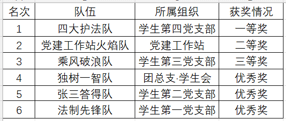 (图三 本次宪法知识竞赛队伍获奖情况)