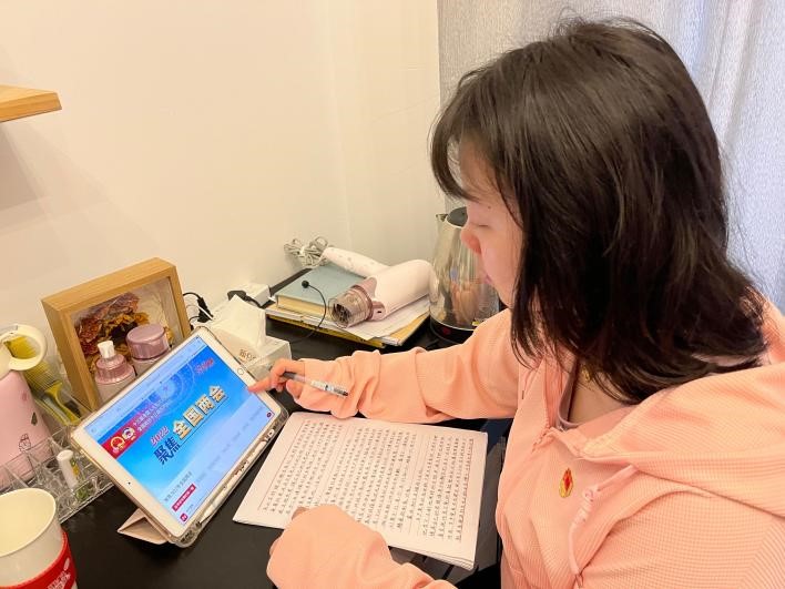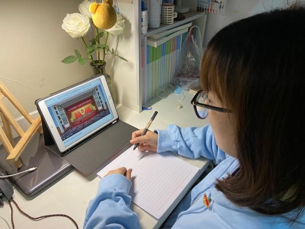 吴冬群、冉露、陈佳玥、陈秀鹃学习两会后表示会认真学习贯彻两会精神,争做时代先锋。