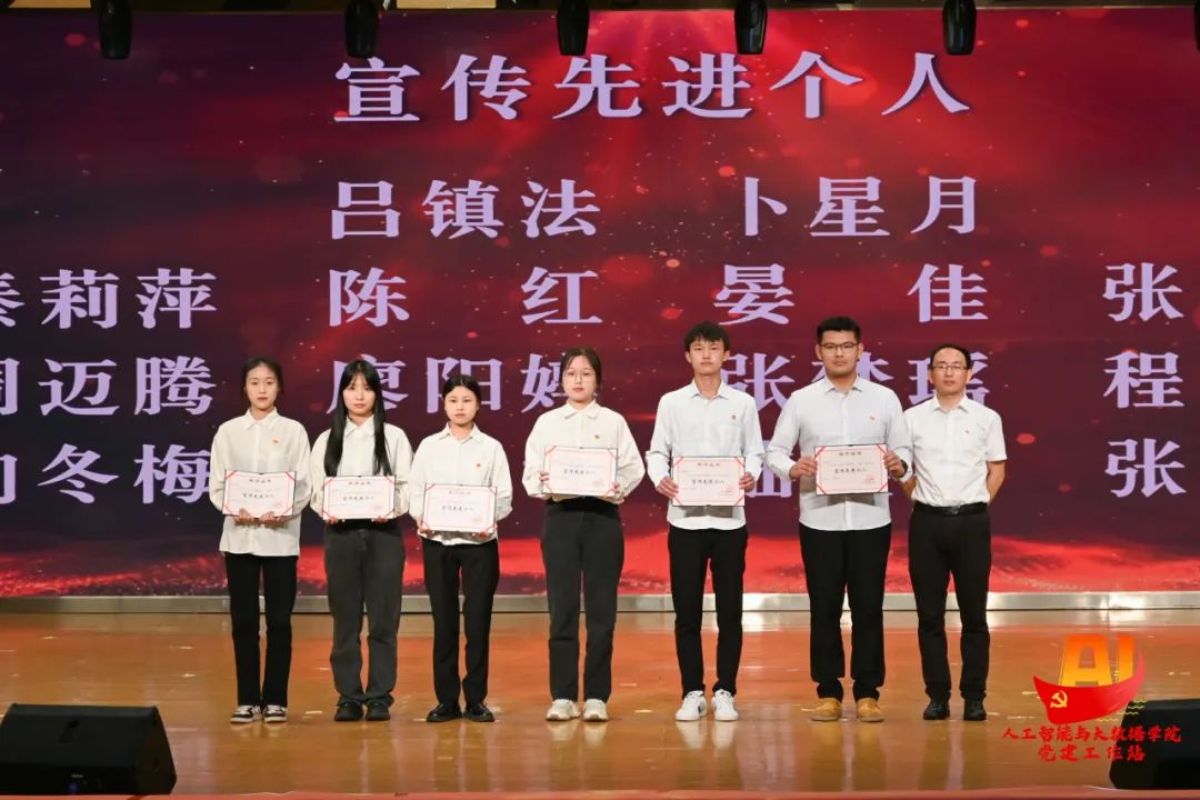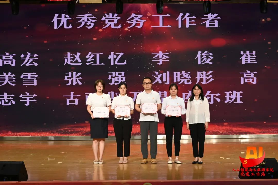 青春正当时,薪火永相传。重庆城市科技学院党委委员、组织部部长、人事处处长刘茜宣读《关于人工智能与大数据学院2023年七一表彰的决定》。院长助理高瑜,原市教委人事处一级调研员彭晓、副院长符欲梅、党总支书记张念分别为受表彰的宣传先进个人、优秀共产党员、优秀党务工作者和先进基层党组织颁发了荣誉证书,以此激励党员同志不断坚持初心、坚定信念,勇担时代使命。