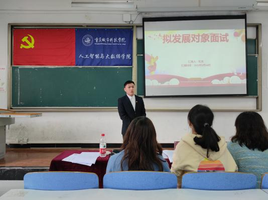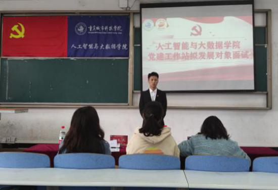 规范考察工作,严控发展质量。拟发展对象考察是党员发展环节的重要环节,人工智能与大数据学院党建工作站严格把控拟发展对象的考察选拔,着力提高发展质量。首先,入党积极分子们依次上台发言,从学习成绩、创新能力、社会实践和综合素质等方面向评委汇报自己的情况,并表达自己的入党决心。通过此次面试,入党积极分子们进一步了解了党的性质、宗旨以及指导思想。
