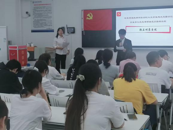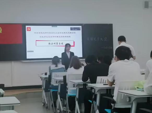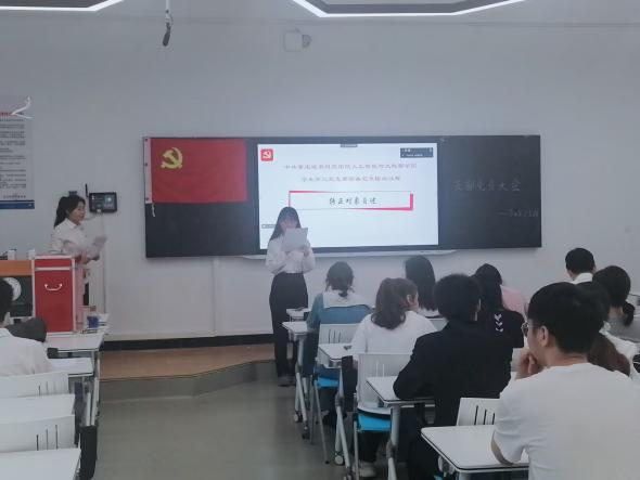 为进一步的落实党员工作发展计划,充分发挥党员的先锋模范作用,2023年6月21日,人工智能与大数据学院学生第三党支部于主教204召开了发展对象转预备党员大会。本次会议由万志桥书记主持,三支部全体师生党员参加。
