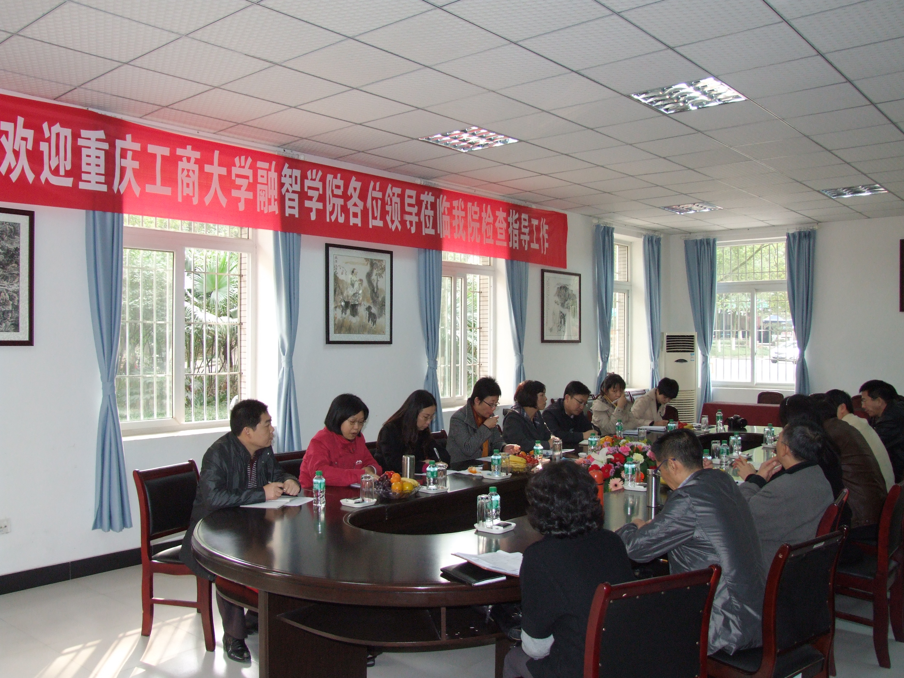 2011年11月30日下午,重庆工商大学融智学院程文莉院长等一行七位老师来到我院进行调研,李嘉明副院长等对其到来表示热烈欢迎。随后调研会议在行政楼101室召开,我院分管教学李嘉明院长,教务处杨学茹处长,人文学院邓仕伦院长,人事处郭利同志等参加了会议。