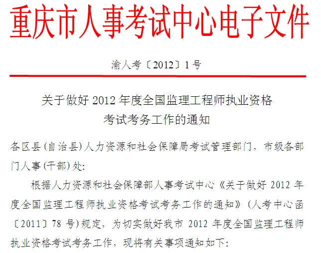 关于做好2012年度全国监理工程师执业资格考试考务工作的通知