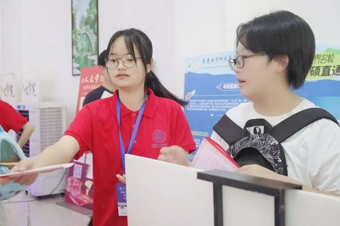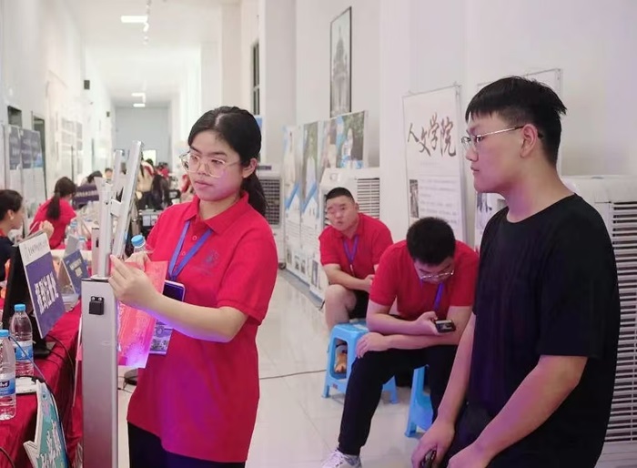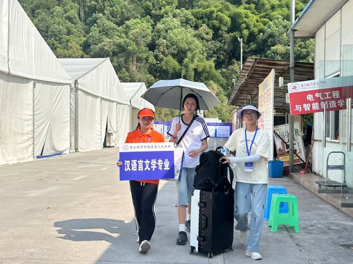 以“新”迎新。部分提前完成报到流程的2024级新生们请缨加入迎新队伍,主动参与到迎新工作当中,热心帮助同学入学报到,充分发挥新生之间互帮互助的作用。