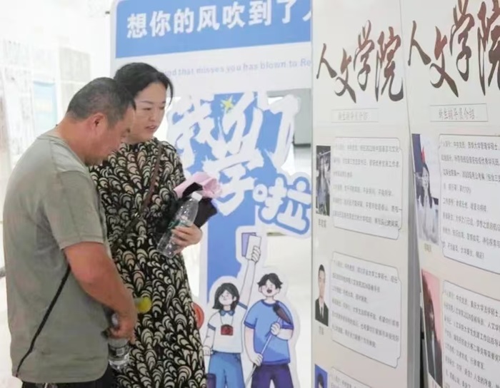 为充分展示我院文化底蕴和学科人才等特色优势,在迎新现场特别定制了学院领导、专业介绍、新生辅导员介绍、本硕直通知名校友、党建风采和团学风采展示丽屏,拍照打卡留念展示板,迎新祝福标语等宣传品,吸引了多位新生及家长驻足观看,增进其对学院的了解。