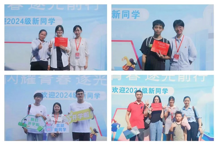 迎新期间,院长邓仕伦、党总支副书记纪振鹏、副院长黄伟、院长助理王丹丹多次来到迎新现场指导工作,纪书记还在现场和党总支组织委员徐杰、团学组组长袁超积极探讨如何更好地做好迎新工作。新生辅导员在现场全面摸排掌握新生情况,她们一直热情的与报到的新生及家长们亲切交谈,解答新生疑问,询问来校报到流程是否顺利、校园环境及寝室条件是否满意等,鼓励同学们尽快适应大学的学习、生活。