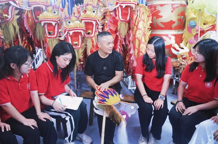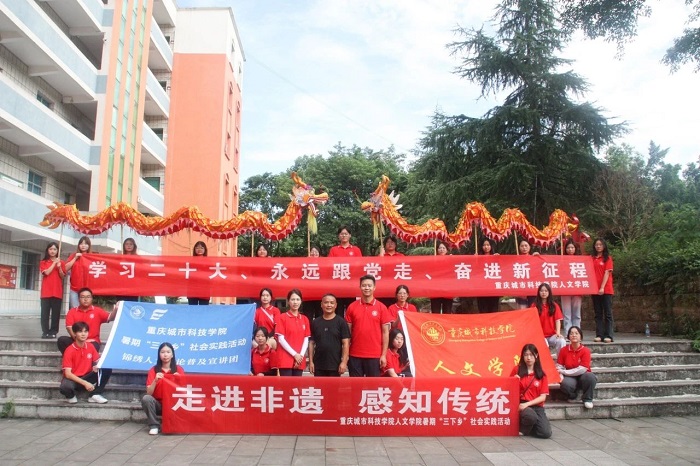 弘扬传统文化,传承非遗技艺。当日下午,志愿者们来到永川双石中学,走进重庆市非遗双石小金龙传,倾听非遗传承人杨光华老师讲诉他与小金龙的不解之缘。现场体验和学习促进非遗文化发扬光大,激发青年的奋斗力量,书写新时代的“龙的传人”。
