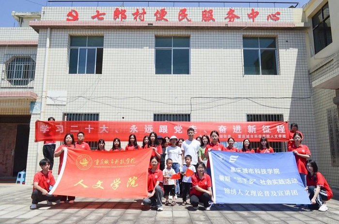 为深入学习贯彻党的二十大精神,推进“百县千镇万村高质量发展工程”,引导广大青年在社会实践课堂中“受教育,长才干,做贡献”,进一步发挥好暑期“三下乡”社会实践活动的实践育人作用,提高青年学子的社会责任感,团结引领广大青年永远跟党走,奋进新征程。2023年7月4日—6日,人文学院团学指导老师宾光勇、代梦媛带领人文志愿者们在永川区卫星湖街道开展“学习二十大、永远跟党走、奋进新征程”为主题的暑期“三下乡”社会实践活动。