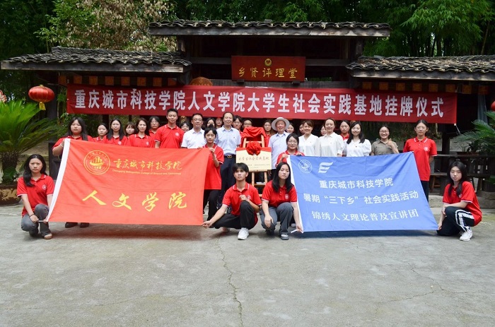 为推动我校大学生素质教育发展,7月6日,人文学院联合永川区卫星湖街道石龟寺村开展暑期“三下乡”第三站社会实践活动,共建大学生社会实践基地。街道党工委副书记、办事处主任周霞,党工委组织委员陈树林,重庆城市科技学院党委副书记、副校长贾瑞,人文学院党总支副书记纪振鹏,共同出席了本次大学生社会实践基地挂牌仪式。