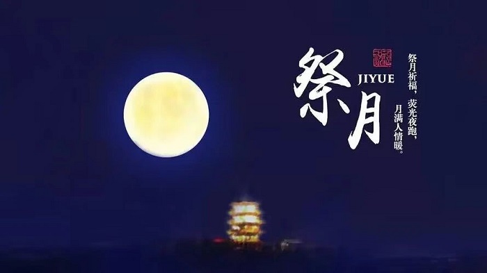 祭月,在我国是一种十分古老的习俗,是古人对“月神”的一种崇拜活动。在古代有“秋暮夕月”的习俗,夕月,即拜祭月神。设大香案,摆月饼、西瓜、苹果、红枣、李子、葡萄等祭品,将“月神”牌位放在朝着月亮的方向,红烛高燃,全家人依次拜祭月亮,祈求福佑。祭月赏月,托月追思,祭月作为中秋节重要的祭礼之一,从古延续至今,逐渐演化为民间的赏月、颂月活动,同时也成为现代人渴望团聚、寄托美好生活愿望的主要形态。