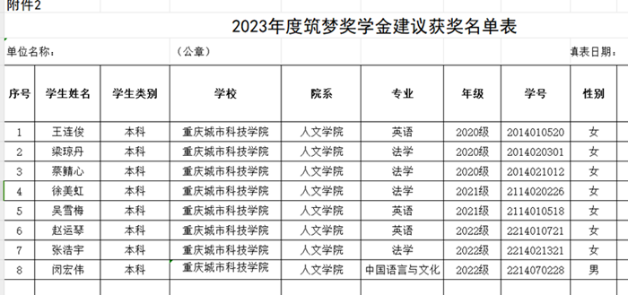 经过激烈的角逐以及评委团讨论研究决定,拟推荐王连俊等8人为中国教育发展基金会2023年度筑梦奖学金候选人,现予以公示(详见附件2名单表)。