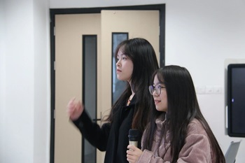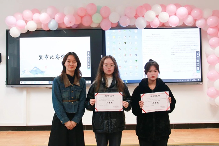 “英”你而来,声声精彩。首先进行的配音秀比赛拉动了现场热情而紧张的氛围,比赛中,选手们热情高涨,精神饱满,落落大方,用熟练的英语口语,抑扬顿挫的语音语调,惟妙惟肖的表情和肢体语言,声情并茂地演绎了每一个角色,为在场师生们呈现了一场精彩绝伦的视听盛宴。人文学院外国语言与文化系主任曾右美、党总支组织委员徐杰对本次的配音秀进行了点评,她们指出,在此次的配音秀中感受到了同学们学习语言的热情,也希望同学们能够继续保持这份热情,学好外语,以致于传播中华优秀传统文化,同时,她们也点明了同学们的不足之处,激励她们在今后的配音比赛中更多的加上肢体动作,将表演展现得更加生动。