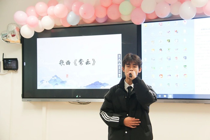 随着音乐的开始,暖场节目《常乐》登场。他用深情的歌声,将此次比赛的氛围推向高潮,充分活跃现场气氛,绽放了青春风采,也告诉了我们先苦后甜,知足常乐的人生哲理。