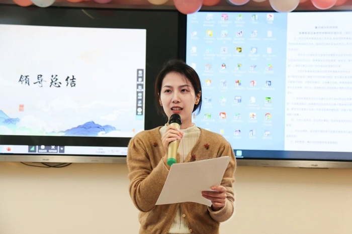 最后,代梦媛为本次比赛做总结。首先,她肯定了工作人员在此次比赛中的付出,赞美了选手们的精彩表演。接着她指出,此次的比赛为大家架起了无形的心灵通道,在“配音秀”环节之中,选手们运用熟练而沉稳的语调,激发了大家热情的同时,也一定程度上提高了大学生的语言素养,增进了大学生对语言更深层次的理解。戏剧作为一种艺术的表演形式,也向我们展现出了人世间各种酸甜苦辣,各参赛选手也用自己最饱满的状态来诠释自己对剧本以及背后故事深刻的理解。她也希望同学们能够将在本次比赛中学到的知识运用到生活中,继续保持对文化的憧憬和激情,用积极、健康、文明、向上的文化活动丰富自己的精神生活。