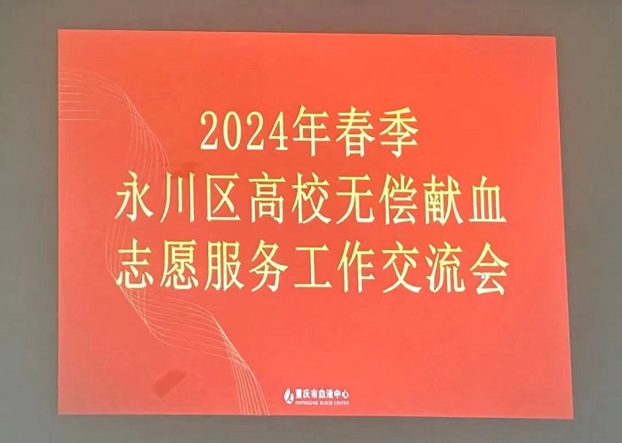 让爱心传递,为生命接力。2024年3月23日,重庆城市科技学院人文学院志愿者于永川区黄瓜山晨曦山庄参与重庆市血液中心开展的2024年春季永川区高校无偿献血志愿服务工作交流会。重庆市血液中心献血服务三科主任唐廷梦,重庆市血液中心献血服务三科副主任冯治伟,重庆市血液中心献血服务三科医生赖守容为现场志愿者讲解2024年重庆永川区高校无偿献血志愿工作现状以及成效。
