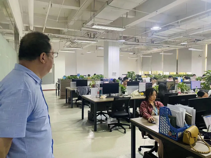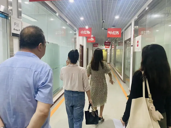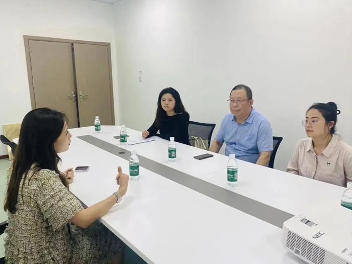 我院教师来到重庆文德数字科技发展有限公司时,该公司招聘部门经理史承倩对我院教师的到来表示热烈的欢迎。史经理带领我院一行人参观公司的办公环境后,双方进行了座淡交流。