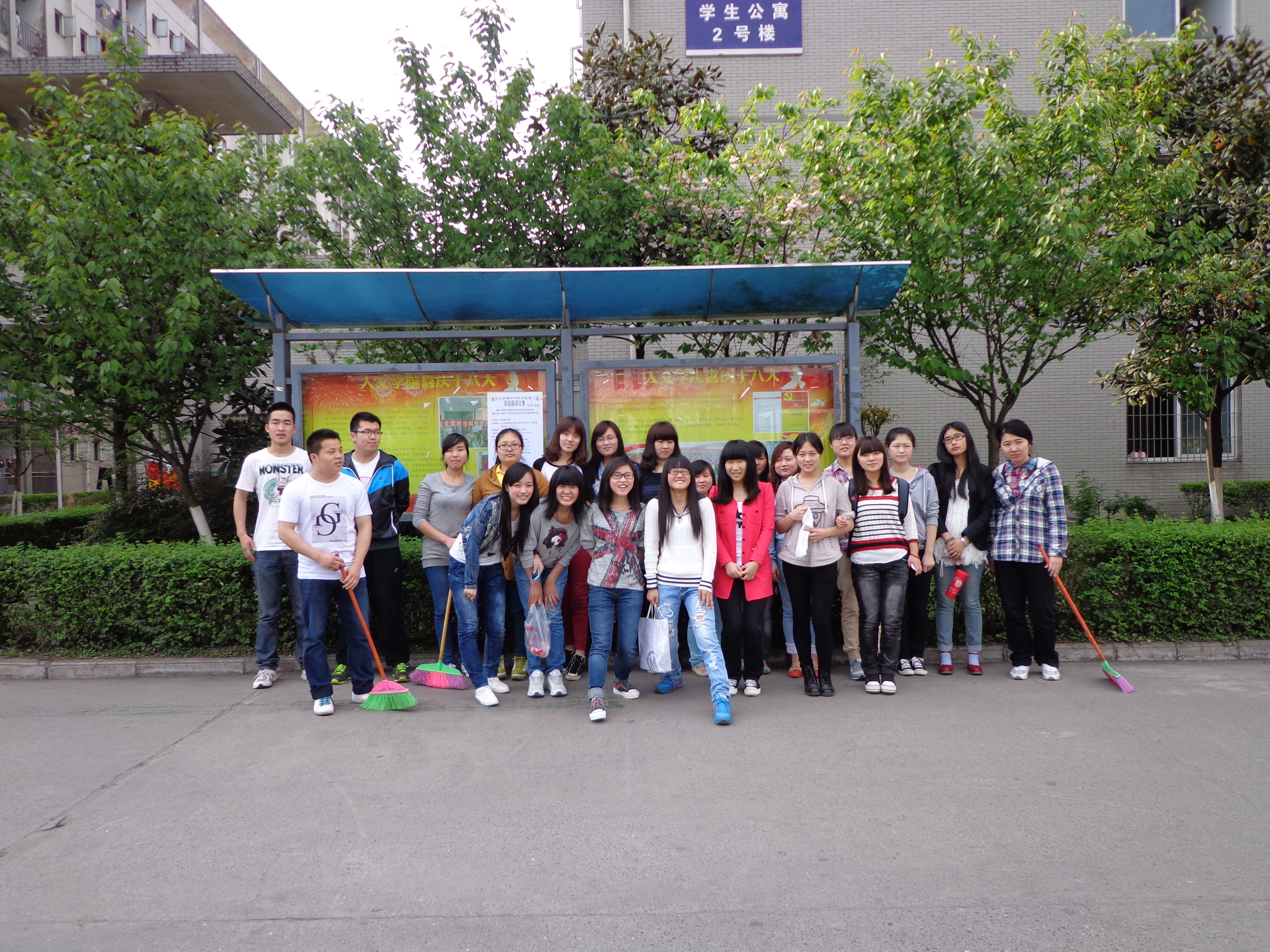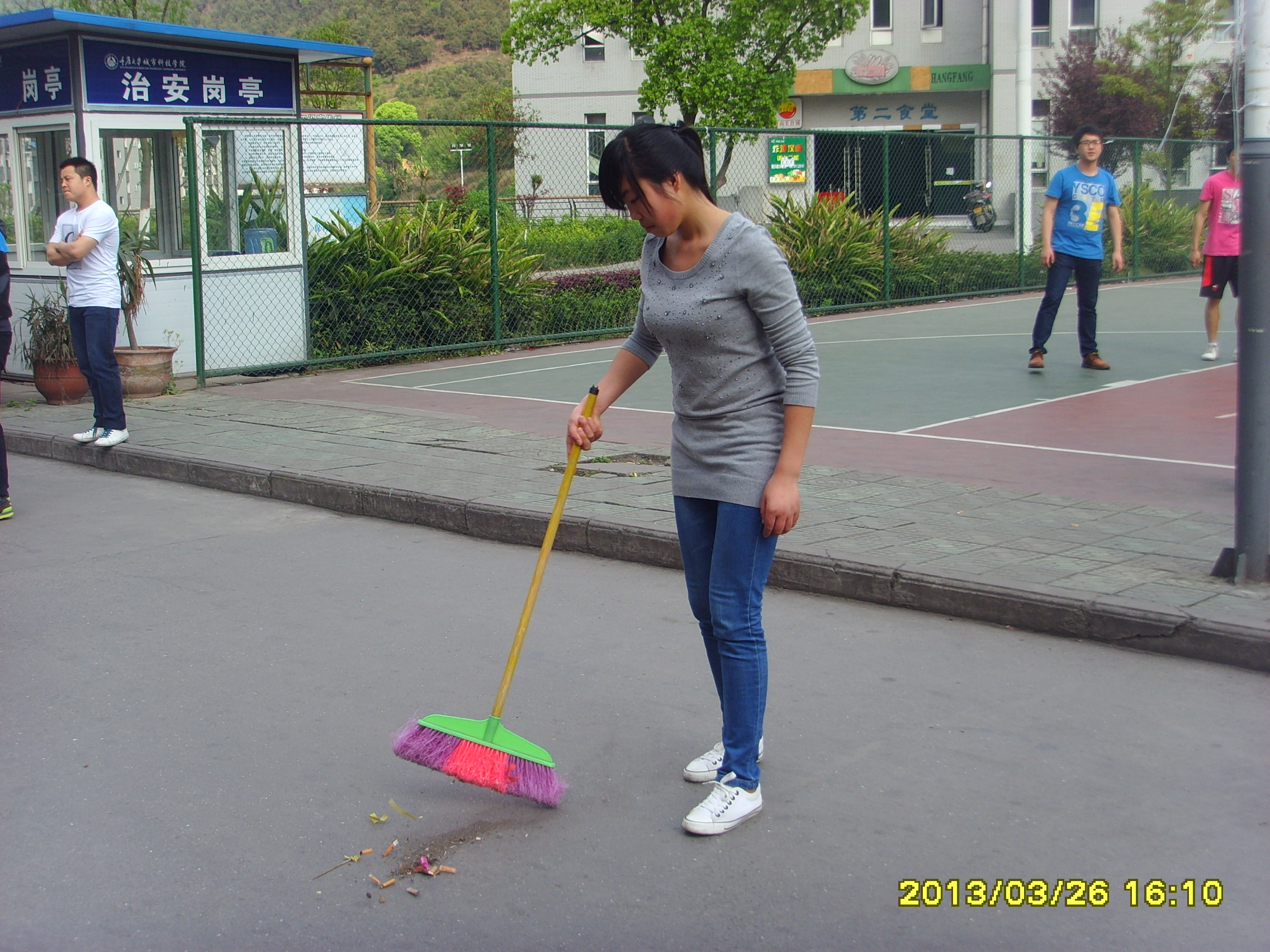 人文学院2012年3月27日电,2013年3月26日下午15:30,人文学院2011级英语(3)班团支部在AB栋外主干道举办“‘用行动书写雷锋精神’——美化校园,我们在行动”主题活动。