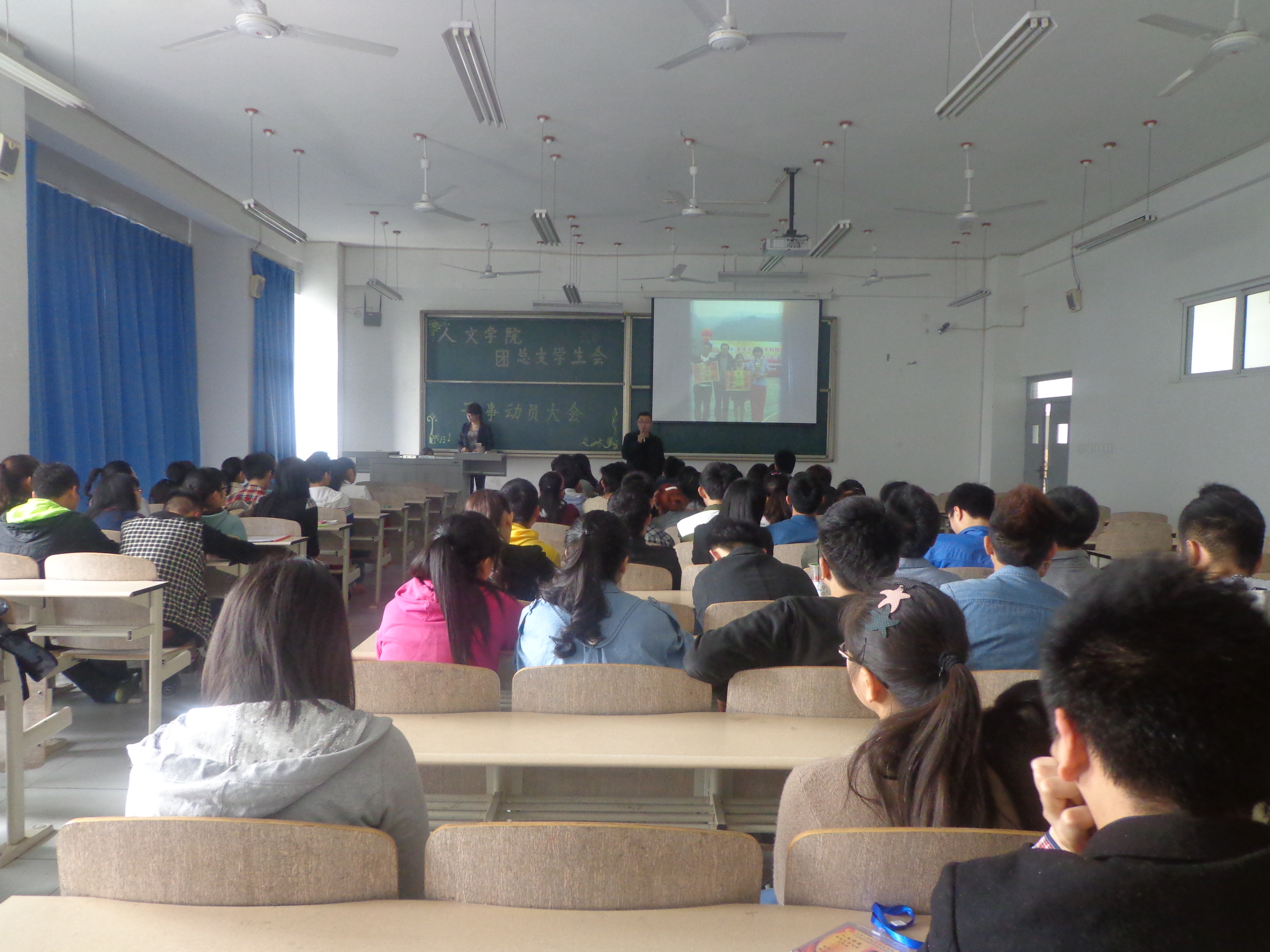 2013年3月15日下午十二点半人文学院团总支学生会在主教210举行了干事动员大会。出席本次大会的有人文学院团总支学生会主席团,干部以及所有干事。团总支书记李甜甜对上学期工作以及对新学期的展望作出了讲话。