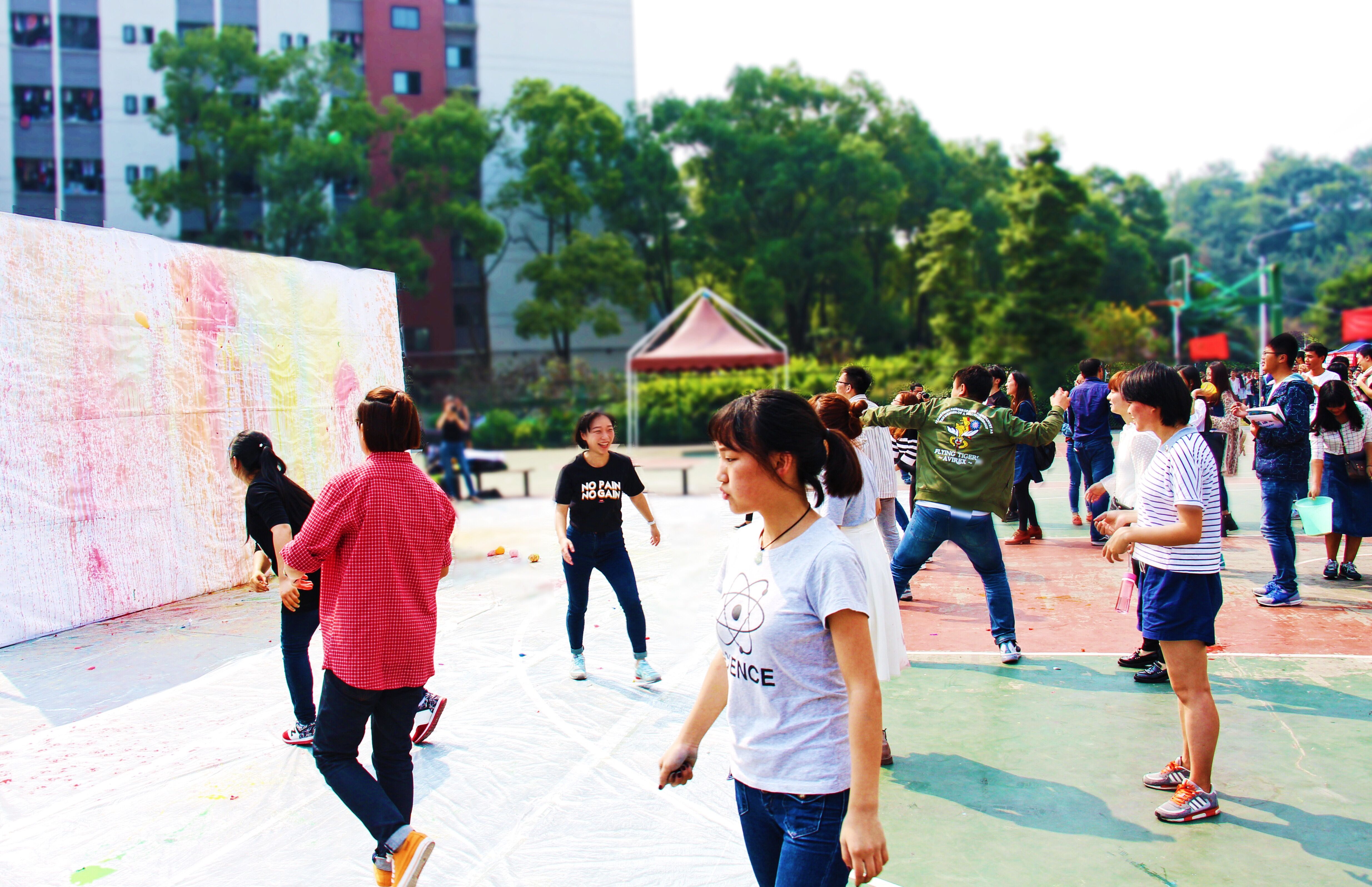 2015年10月16日中午,我校人文学院广告学子在AB栋篮球场主办了一场创意主题为“Let’s play fashion,发泄吧!”的互动活动。人文学院2013级广告学专业王艺洁、张逸捷、邓婕、周俊霖、魏嘉恒五位同学发起的该互动活动,原来这是他们的一次课程作业,也是2015 ONE SHOW 中华青年创新竞赛的参赛作品。