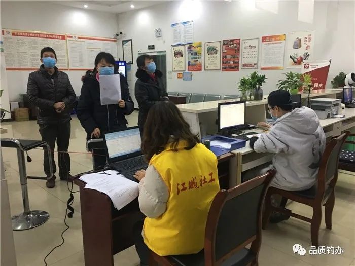 罗建霖(右一)在办理外出务工人员健康申报证明